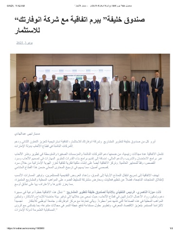 6/4/25, 11:52 AM “رﺎﺑﺧﻸﻟ رﺎﺑﺳﻣ – رﺎﻣﺛﺗﺳﻼﻟ كﺗرﺎﻓوﻧا ﺔﻛرﺷ ﻊﻣ ﺔﯾﻗﺎﻔﺗا مرﺑﯾ ”ﺔﻔﯾﻠﺧ قودﻧﺻ