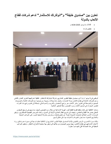 يئانثلا نواعتلا زيزعتل ةيجيتارتسا ةيقافتا ،رامثتسلال كترافونا ةكرشو عيراشملا ريوطتل ةفيلخ قودنص مربأ / ماو / وينوي 3 يف يبظوبأ