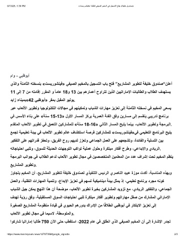 رﺑﻋ بﺎﻌﻟﻷا رﯾوطﺗو ﺎﯾﺟوﻟوﻧﻛﺗﻟا تﻻﺎﺟﻣ ﻲﻓ مﮭﻧﯾﻛﻣﺗو بﺎﺑﺷﻟا تارﺎﮭﻣ زﯾزﻌﺗ ﻰﻟإ ﺔﻧﻣﺎﺛﻟا ﮫﺗﺧﺳﻧ ﻲﻓ مﯾﺧﻣﻟا ﻰﻌﺳﯾ