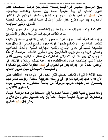 ﻢﮭﺘﻛرﺎﺸﻣ ﺖﺟ ّ ﻮﺗو ،ﺔﻔﺜﻜﻤﻟا ﺔﯿﺒﯾرﺪﺘﻟا ﮫﺠﻣاﺮﺑ ﻲﻓ اﻮﻛرﺎﺷ ﺎﯿﺗارﺎﻣإ ﺎﺒﻟﺎط 750 نﻵا