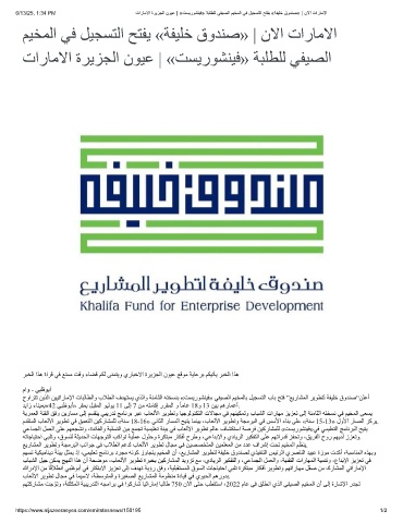 حواﺮﺘﺗ ﻦﯾﺬﻟا ﻦﯿﯿﺗارﺎﻣﻹا تﺎﺒﻟﺎﻄﻟاو بﻼﻄﻟا فﺪﮭﺘﺴﯾ يﺬﻟاو ﺔﻨﻣﺎﺜﻟا ﮫﺘﺨﺴﻨﺑ «ﺖﺴﯾرﻮﺸﻨﯿﻓ» ﻲﻔﯿﺼﻟا ﻢﯿﺨﻤﻟﺎﺑ ﻞﯿﺠﺴﺘﻟا بﺎﺑ ﺢﺘﻓ ”ﻊﯾرﺎﺸﻤﻟا ﺮﯾﻮﻄﺘﻟ ﺔﻔﯿﻠﺧ قوﺪﻨﺻ“ﻦﻠﻋأ