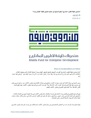 بلاطلا فدهتسي يذلاو ةنماثلا هتخسنب ”تسيروشنيف“ يفيصلا ميخملاب ليجستلا باب حتف ”عيراشملا ريوطتل ةفيلخ قودنص“نلعأ