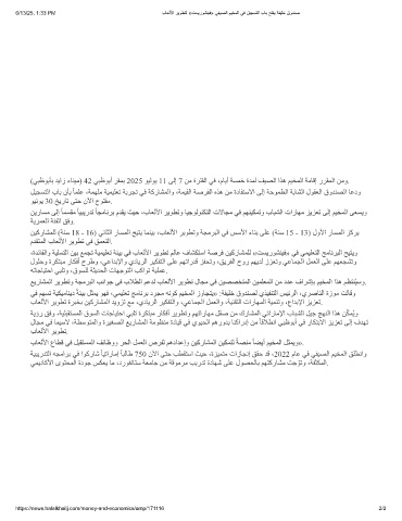 ﻦﯾرﺎﺴﻣ ﻰﻟإ ً ﺎﻤﺴﻘﻣ ً ﺎﯿﺒﯾرﺪﺗ ً ﺎﺠﻣﺎﻧﺮﺑ مﺪﻘﯾ ﺚﯿﺣ ،بﺎﻌﻟﻷا ﺮﯾﻮﻄﺗو ﺎﯿﺟﻮﻟﻮﻨﻜﺘﻟا تﻻﺎﺠﻣ ﻲﻓ ﻢﮭﻨﯿﻜﻤﺗو بﺎﺒﺸﻟا تارﺎﮭﻣ ﺰﯾﺰﻌﺗ ﻰﻟإ ﻢﯿﺨﻤﻟا ﻰﻌﺴﯾو
