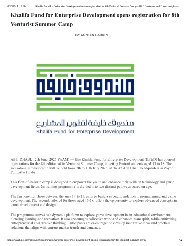 6/13/25, 1:10 PM Khalifa Fund for Enterprise Development opens registration for 8th Venturist Summer Camp – UAE Business and Travel Insights – …