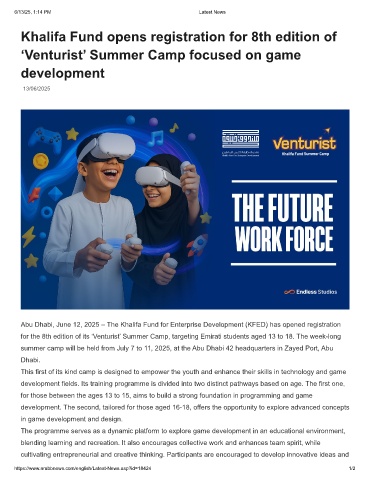 for the 8th edition of its ‘Venturist’ Summer Camp, targeting Emirati students aged 13 to 18. The week-long