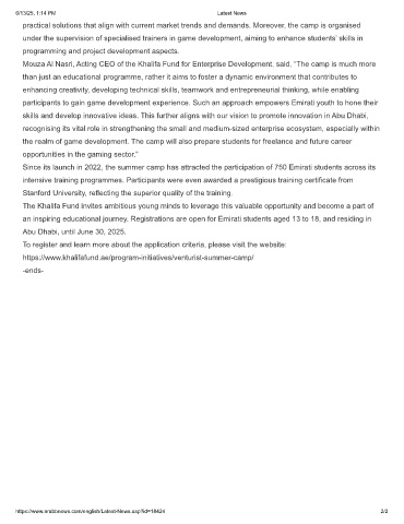 Since its launch in 2022, the summer camp has attracted the participation of 750 Emirati students across its