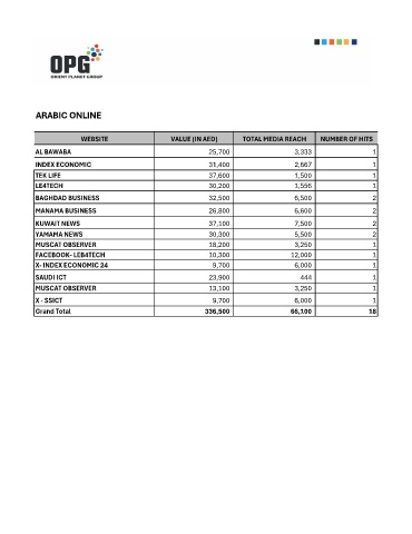 WEBSITE VALUE (IN AED) TOTAL MEDIA REACH NUMBER OF HITS