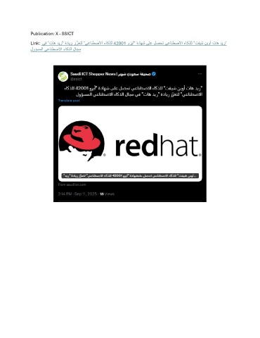 Publication: X - SSICT Link: يف ”تاه دير“ ةداير ز ّ زعتل ”يعانطصلاا ءاكذلل 42001 وزيآ“ ةداهش ىلع لصحت يعانطصلاا ءاكذلل ”تفيش نبوأ تاه دير“ لوؤسملا يعانطصلاا ءاكذلا لاجم