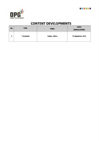 CONTENT DEVELOPMENTS DATE No. TYPE TOPIC (CIRCULATION) 5 Translation Adrian - Byline 02 September 2025