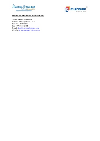 For further information, please contact: CommuniGate Middle East P.O.Box 500270, Dubai, UAE Tel: +971 4 4546093 Fax: +971 4 3612432 E-mail: info@communigateme.com Website: www.communigateme.com