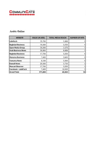 WEBSITE VALUE (IN AED) TOTAL MEDIA REACH NUMBER OF HITS