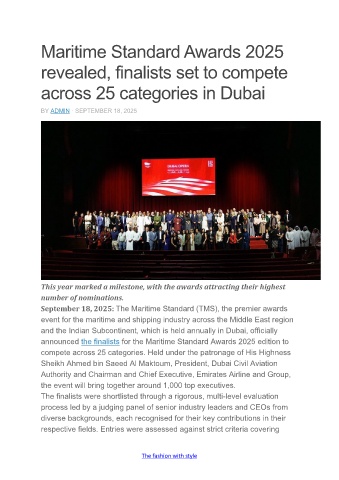 announced the finalists for the Maritime Standard Awards 2025 edition to