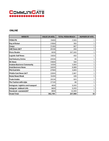 WEBSITE VALUE (IN AED) TOTAL MEDIA REACH NUMBER OF HITS