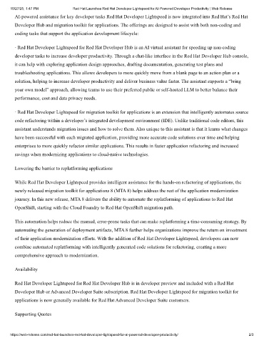 10/27/25, 1:47 PM Red Hat Launches Red Hat Developer Lightspeed for AI-Powered Developer Productivity | Web Release