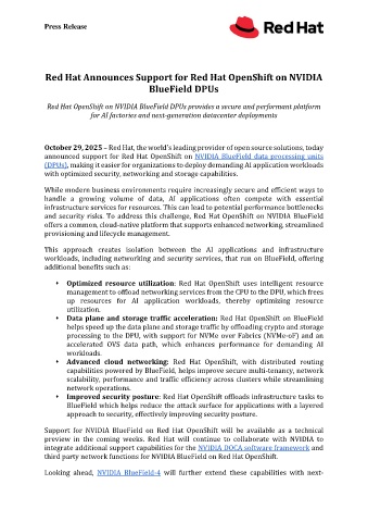 announced support for Red Hat OpenShift on NVIDIA BlueField data processing units