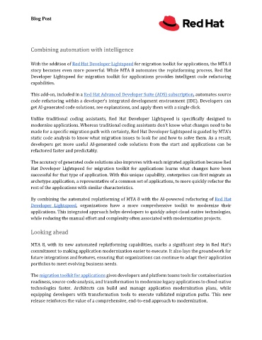 story becomes even more powerful. While MTA 8 automates the replatforming process, Red Hat