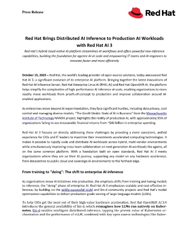 to inference, the “doing” phase of enterprise AI. Red Hat AI 3 emphasizes scalable and cost-effective in-