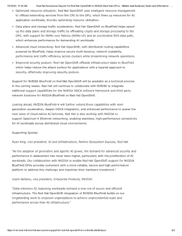 10/30/25, 11:46 AM Red Hat Announces Support for Red Hat OpenShift on NVIDIA BlueField DPUs - Middle East Business News and Information - …
