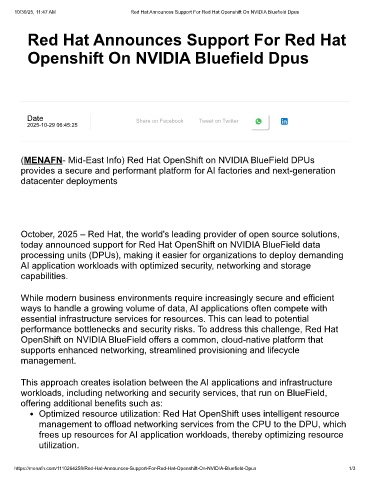 https://menafn.com/1110264258/Red-Hat-Announces-Support-For-Red-Hat-Openshift-On-NVIDIA-Bluefield-Dpus 1/3