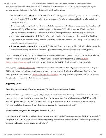 10/30/25, 11:47 AM Red Hat Announces Support for Red Hat OpenShift on NVIDIA BlueField DPUs | Web-Release