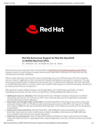 https://channelpostmea.com/2025/10/30/red-hat-announces-support-for-red-hat-openshift-on-nvidia-bluefield-dpus/ 1/2