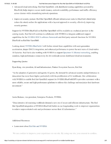 10/30/25, 11:48 AM Red Hat Announces Support for Red Hat OpenShift on NVIDIA BlueField DPUs