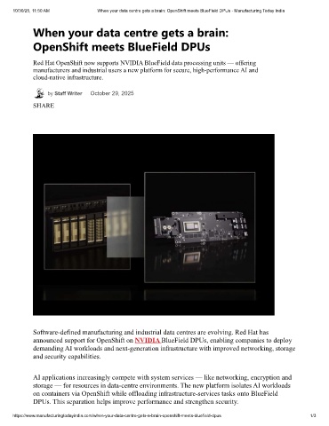 10/30/25, 11:50 AM When your data centre gets a brain: OpenShift meets BlueField DPUs - Manufacturing Today India