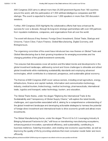 12/28/24, 7:11 PM Hosting AIM Congress in Abu Dhabi reinforces UAE’s position as FDI hub