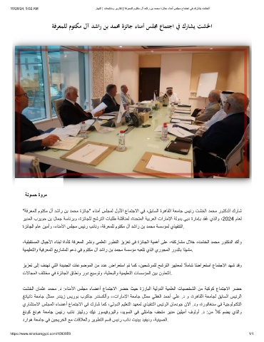 10/28/24, 9:02 AM رﺎﮭﻧﻟا | تﺎﻌﺑﺎﺗﻣو رﯾرﺎﻘﺗ | ﺔﻓرﻌﻣﻠﻟ موﺗﻛﻣ لآ دﺷار نﺑ دﻣﺣﻣ ةزﺋﺎﺟ ءﺎﻧﻣأ سﻠﺟﻣ عﺎﻣﺗﺟا ﻲﻓ كرﺎﺷﯾ تﺷﺧﻟا