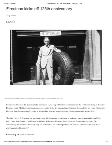 8/8/25, 10:57 AM Firestone kicks off 125th anniversary - Lifestyle & Tech