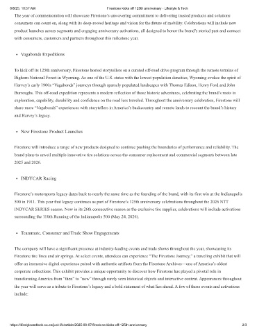 8/8/25, 10:57 AM Firestone kicks off 125th anniversary - Lifestyle & Tech