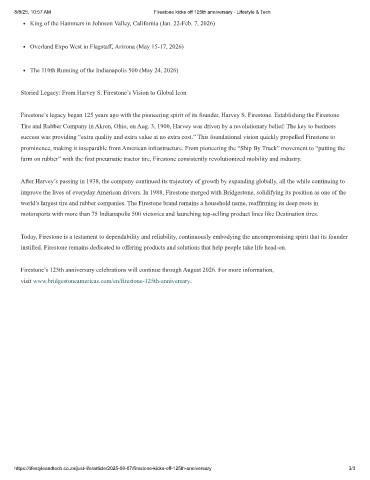 8/8/25, 10:57 AM Firestone kicks off 125th anniversary - Lifestyle & Tech