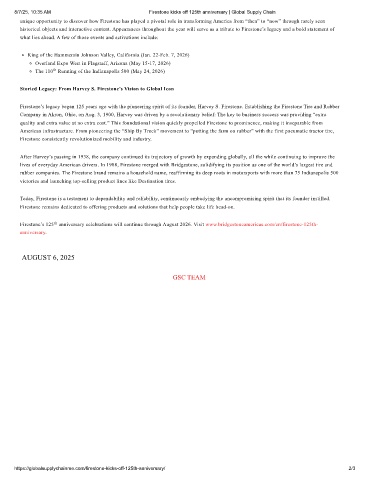 8/7/25, 10:35 AM Firestone kicks off 125th anniversary | Global Supply Chain