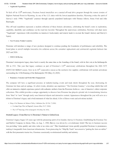 8/7/25, 10:36 AM Firestone Kicks Off 125th Anniversary Company honors legacy and pioneering spirit with year-long celebration – Executive Bulletin
