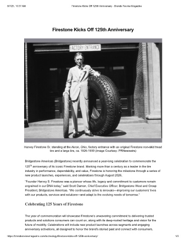 8/7/25, 10:37 AM Firestone Kicks Off 125th Anniversary - Brands Review Magazine