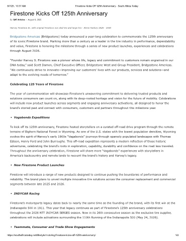 8/7/25, 10:37 AM Firestone Kicks Off 125th Anniversary - South Africa Today