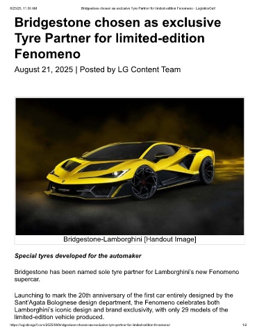 https://logisticsgulf.com/2025/08/bridgestone-chosen-as-exclusive-tyre-partner-for-limited-edition-fenomeno/ 1/2