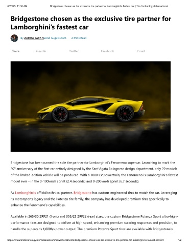 https://www.tiretechnologyinternational.com/news/oe-fitments/bridgestone-chosen-as-the-exclusive-tire-partner-for-lamborghinis-fastest-car.html 1/2