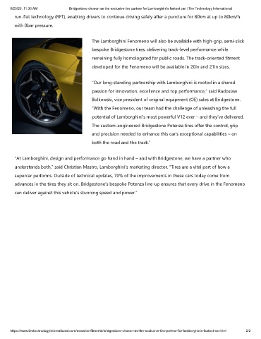 https://www.tiretechnologyinternational.com/news/oe-fitments/bridgestone-chosen-as-the-exclusive-tire-partner-for-lamborghinis-fastest-car.html 2/2