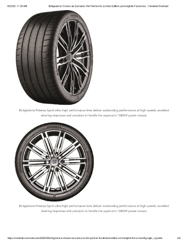 8/25/25, 11:38 AM Bridgestone Chosen as Exclusive Tire Partner for Limited-Edition Lamborghini Fenomeno - Cerebral-Overload