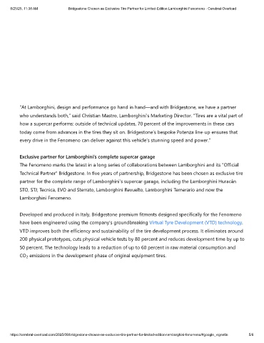 8/25/25, 11:38 AM Bridgestone Chosen as Exclusive Tire Partner for Limited-Edition Lamborghini Fenomeno - Cerebral-Overload