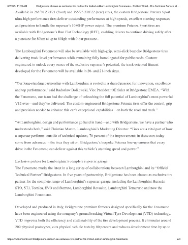 8/25/25, 11:39 AM Bridgestone chosen as exclusive tire partner for limited-edition Lamborghini Fenomeno - Rubber World - The Technical Service M…