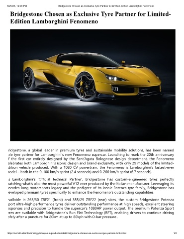 8/25/25, 12:00 PM Bridgestone Chosen as Exclusive Tyre Partner for Limited-Edition Lamborghini Fenomeno