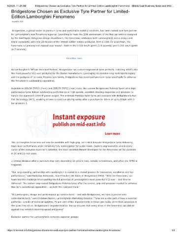 8/20/25, 11:28 AM Bridgestone Chosen as Exclusive Tyre Partner for Limited-Edition Lamborghini Fenomeno - Middle East Business News and Infor…