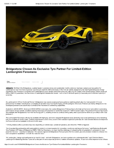 8/20/25, 11:32 AM Bridgestone Chosen As Exclusive Tyre Partner For Limited-Edition Lamborghini Fenomeno