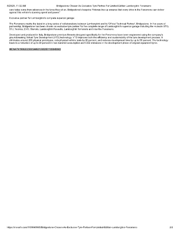 8/20/25, 11:32 AM Bridgestone Chosen As Exclusive Tyre Partner For Limited-Edition Lamborghini Fenomeno