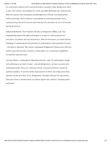 8/20/25, 11:35 AM Lamborghini’s Limited-Edition Fenomeno Supercar To Run On Bridgestone Potenza Sport UHP Tyres