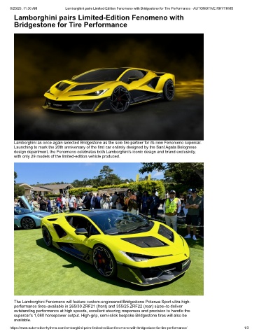 8/20/25, 11:36 AM Lamborghini pairs Limited-Edition Fenomeno with Bridgestone for Tire Performance - AUTOMOTIVE RHYTHMS