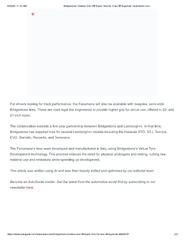 8/20/25, 11:37 AM Bridgestone Creates One-Off Super Tires for One-Off Supercar | AutoGuide.com