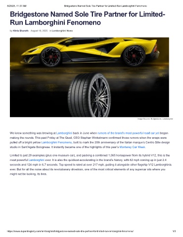 8/20/25, 11:37 AM Bridgestone Named Sole Tire Partner for Limited-Run Lamborghini Fenomeno